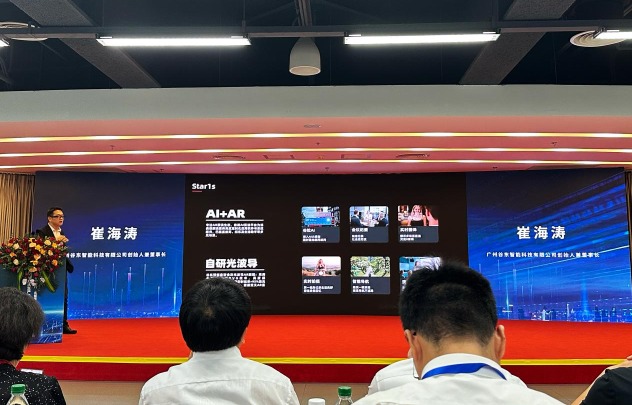 在本次活动中,崔海涛先生全程佩戴的谷东智能全彩光波导一体式AI+AR智能眼镜——星彩Star1S,成为了众人瞩目的焦点。这款眼镜采用了全球领先的彩色阵列光波导技术,具备超高光效和透光率,同时搭载了1600万像素自动对焦摄像头,其外观设计轻量化,可以长时间佩戴。星彩Star1S眼镜不仅仅是一款显示设备,更是一个强大的AI+AR平台,广泛覆盖教育、娱乐及生活助手等多元场景。提词器功能通过AI语言大模型,能自动识别佩戴者下一步要说的话,自动完成提示词翻页,无需外部物件操控。观众体验后反馈:“刚讲完一段话,AI智能推荐马上推过来下面要讲什么,太神奇了!”