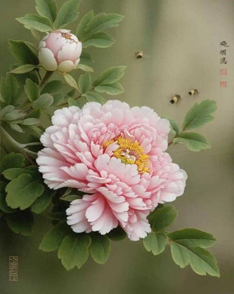 AI说,李晓明的牡丹是“用古典技法讲现代故事”——既保留了宋代院体画的骨法用笔,又融入了水墨画的写意气韵,让千年牡丹在AI时代依然鲜活如初。